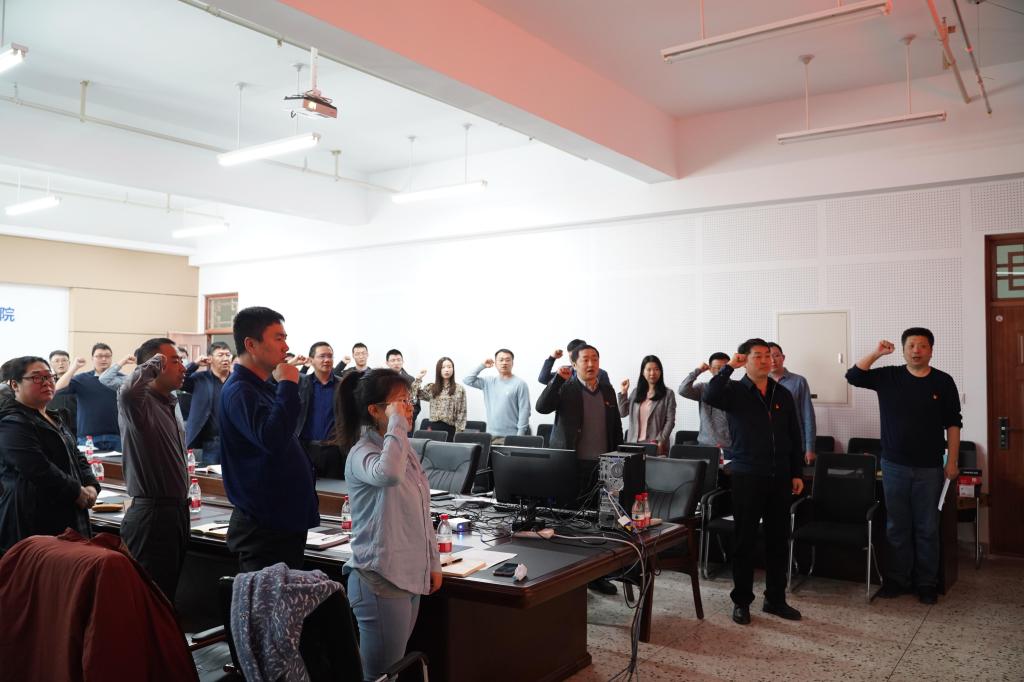 活动中,参会全体党员面向党旗庄严宣誓,重温入党誓词。