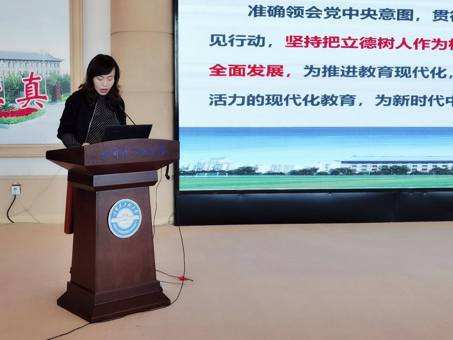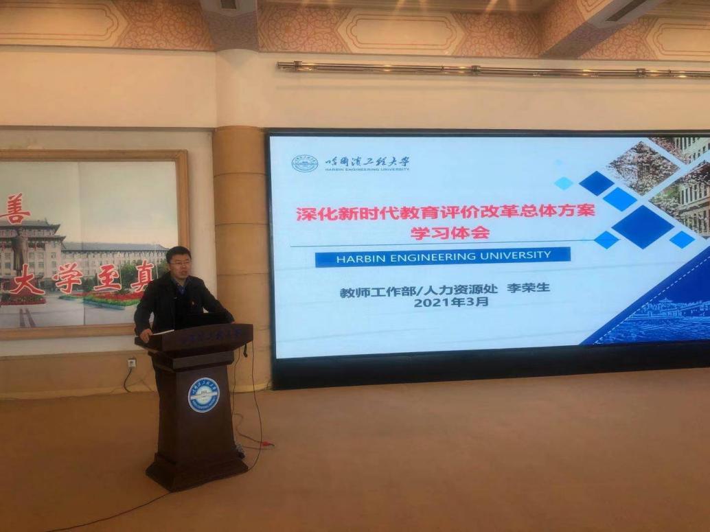党委教师工作部部长兼人力资源处副处长李荣生领学《深化新时代教育评价改革总体方案》,从出台背景、重点任务和关键任务三方面,对《方案》进行了系统解读。他说,准确领会党中央意图,贯彻落实好党中央决策部署,既要有决心,更要见行动,坚持把立德树人作为根本任务,着眼提高人的综合素质、促进人的全面发展,为推进教育现代化,实现更加公平、更高质量、更有效能、更具活力的现代化教育,为新时代中国特色社会主义事业贡献力量。